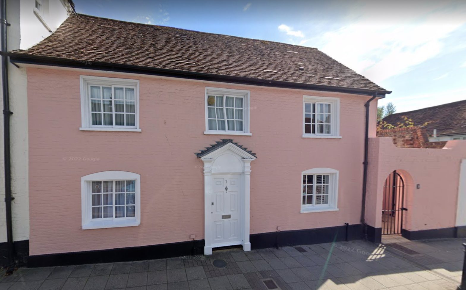 So here are nos. 7 and 9 Westgate, previously no. 4 and a single house. The dividing wall between the properties is between the door and the right-hand pair of windows. The front door of number 9 is through the metal gate.