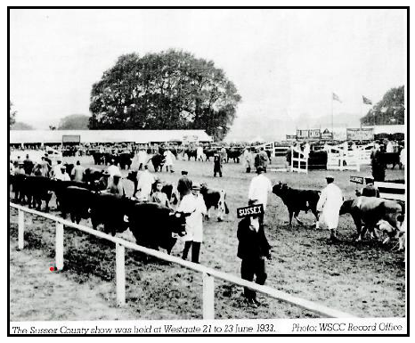 Just before the land was sold for building, however, the Sussex County Show took place on this land. Opened by the Duke of Norfolk on 21st June 1933, some 14,500 people visited the show over three days despite mixed weather.