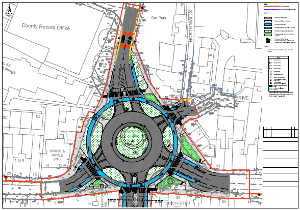 By 1979, Westgate Fields Road had been made into a double carriageway as part of the Chichester Gyratory System, although Orchard Street has remained a single carriageway. The double carriage way was renamed “Avenue de Chartres.” A roundabout has been built at the junction.